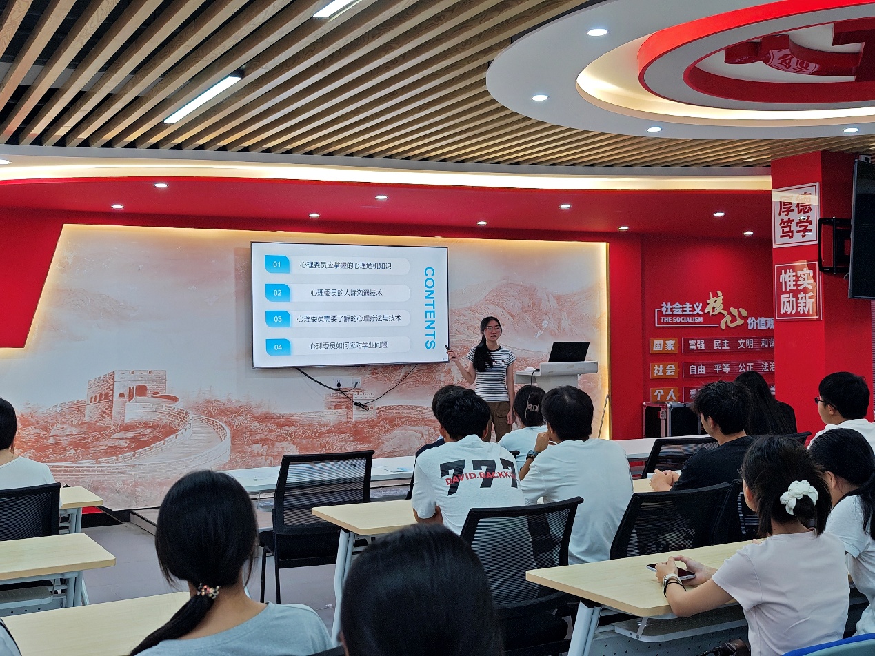 心理健康教育工作,提升心理委员朋辈帮扶能力,10月9日晚,澳门六合彩资料大全在雁山校区明园思政大讲堂顺利开展2025年秋季学期心理委员暨x-环心社第一期朋辈心理辅导技能培训会。本次培训由心理专项辅导员黄甜甜老师主持,全院心理委员和x-环心社成员共同参与。