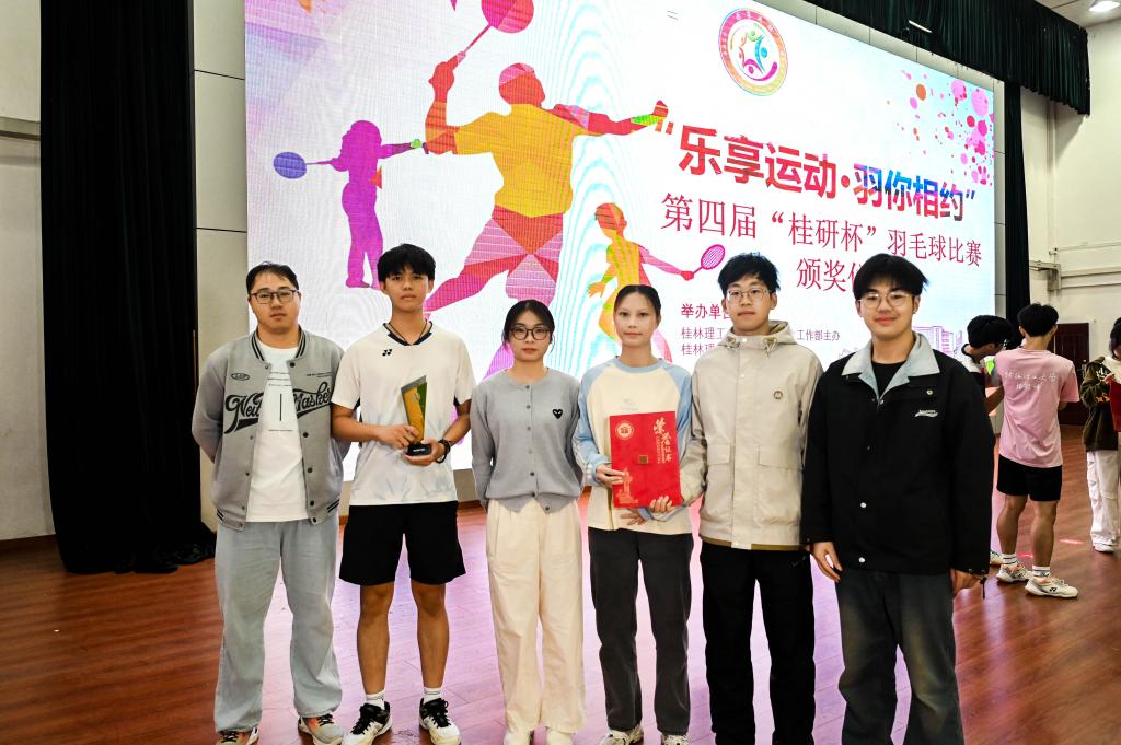 近日,桂林理工大学研究生会举办的第四届“桂研杯”羽毛球比赛在雁山校区旧体育馆圆满落幕。全校十六支代表队参与角逐,澳门六合彩资料大全凭借扎实的竞技功底与出色的团队协作,最终收获男单亚军、男双季军、女双第四名,并获评“最佳组织奖”,充分展现了澳门六合彩资料大全研究生昂扬向上的精神风貌。