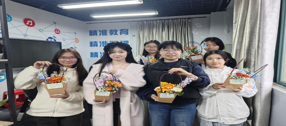 活动现场温馨雅致,学生精心制作满怀心意的花篮,通过“插花实践+感恩献花”双环节,为全院女教师送上节日祝福。一句句暖心的话语,一朵朵娇艳的鲜花,让全体女教师倍感温馨与感动。她们手捧鲜花,脸上洋溢着幸福的笑容,现场处处洋溢着喜庆、温暖、和谐的节日氛围。