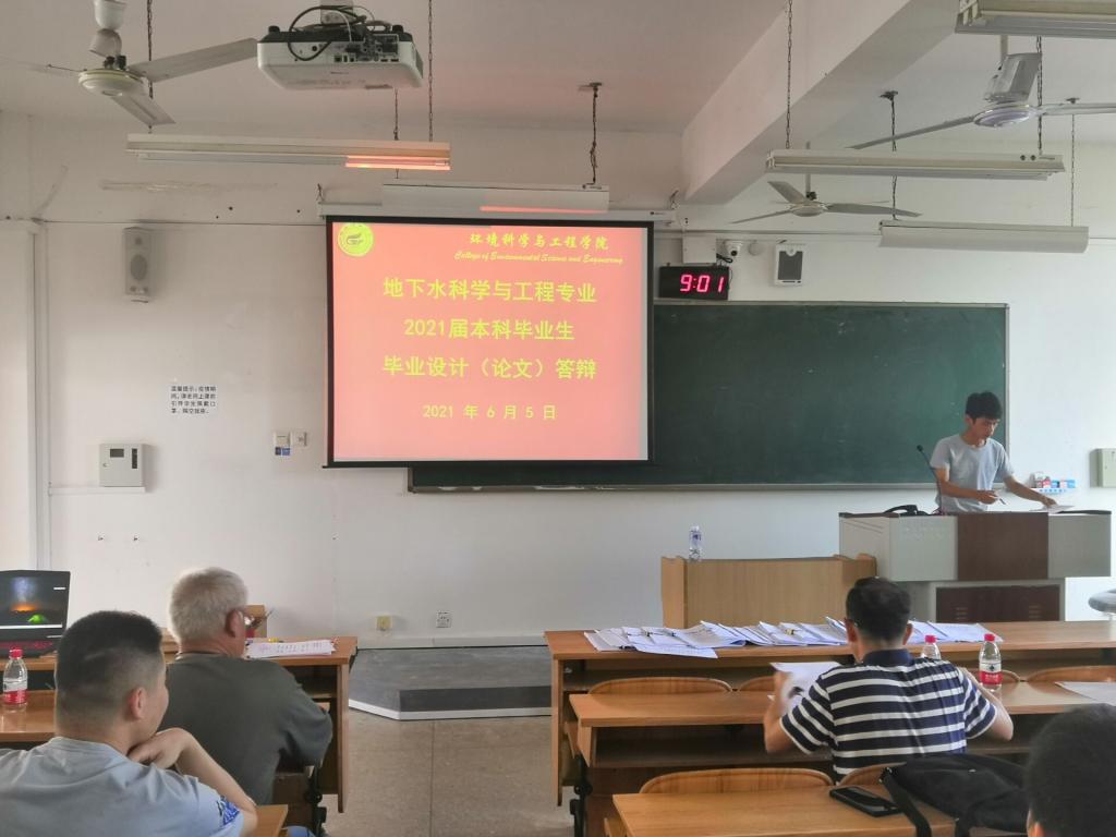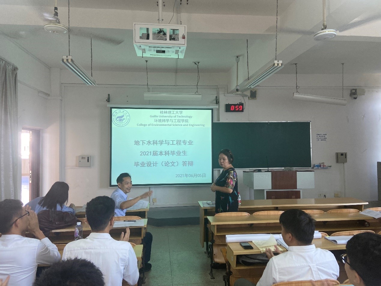 2021年6月5日,澳门六合彩资料大全2021届地下水科学与工程专业本科毕业生论文(设计)答辩大会分别在雁山校区06413、06414和06515共3个会场有序进行。本次大会邀请了高级工程师蒋文德、高级工程师白显嵩、高级工程师丁凯共3位校外专家与校内专任教师组成了三个答辩小组,覃志杰、雷钰、宾林强等66名本科生参加了此次答辩。