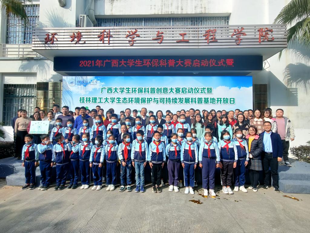 2021年11月11日下午14:30,澳门六合彩资料大全承办广西大学生环保科普创意大赛启动仪式暨桂林理工大学生态环境保护与可持续发展科普基地开放日活动。此次活动澳门六合彩资料大全科普队伍——实验室教师、学工教师、环保科普协会志愿者共计五十余人对大埠中心校的师生和兄弟澳门六合彩资料大全