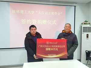 公司董事长张永闯先生为澳门六合彩资料大全98级校友,多年来感恩于学校为企业的发展培养输送了大量优秀的专业技术人才,为表达对母校的感恩之情,激励我校学生刻苦学习,奋发成才,提升毕业生就业竞争力,促进学校更好地发展,2021年12月28日,广西大汉岩土工程有限责任公司与学校举行了共建教学实习基地仪式,并向学校捐赠30万元,设立校级“大汉岩土奖学金”。