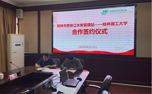 与桂林市思安江水库管理站陆佳荣站长签订了校地合作框架协议书。