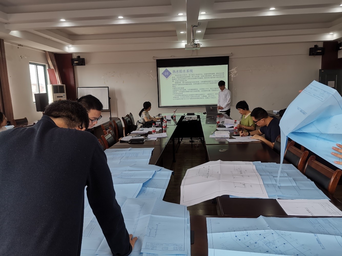 答辩会议严格履行了我校本科生论文答辩程序。首先由答辩秘书宣读答辩规则,其次由参加答辩的学生对自己毕业论文(设计)的工程概况及设计资料、设计任务及主要内容、设计方案、设计计算书、设计图纸等方面以PPT的形式进行6分钟的讲述,接着由答辩组专家和老师就该生论文(设计)的内容向学生提出问题并给出修改建议。最后,待答辩学生将问题回答完毕后,评审组老师对答辩学生的答辩表现进行评分。答辩秘书对答辩过程进行详细记录。答辩现场气氛紧张热烈,松弛有度。