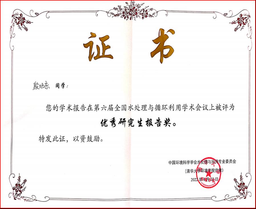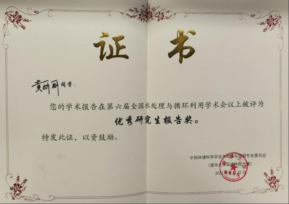 会议共设置了二十四个分会场,100余位来自全国知名高校、科研院所及行业代表性企业的专家学者,围绕水处理与循环利用领域的前沿科学问题、关键技术、工程实践和政策管理等内容做了精彩的报告。会场学术气氛浓厚,一批水处理与循环利用领域的高水平研究成果在会上得到了充分的交流。会议设置了优秀研究生专场,澳门六合彩资料大全李艳红研究员和黄亮亮教授分别担任分会场主席和负责人。会议收到来自全国各大高校研究生们数百份的投稿,经过专家评审,组委会从投稿中优选出23个报告,分两个分会场同时进行现场展示,澳门六合彩资料大全2位博士研究生殷旭东和黄丽丽分别以“磷掺杂 g-C3N4/Bi2WO6 异质结的制备及其可见光催化性能研究”和“硅藻基Cd(II)表面离子印迹聚合物的制备、表征及吸附特性”为主题在分会场做了汇报交流,并都获得“优秀研究生报告”奖。