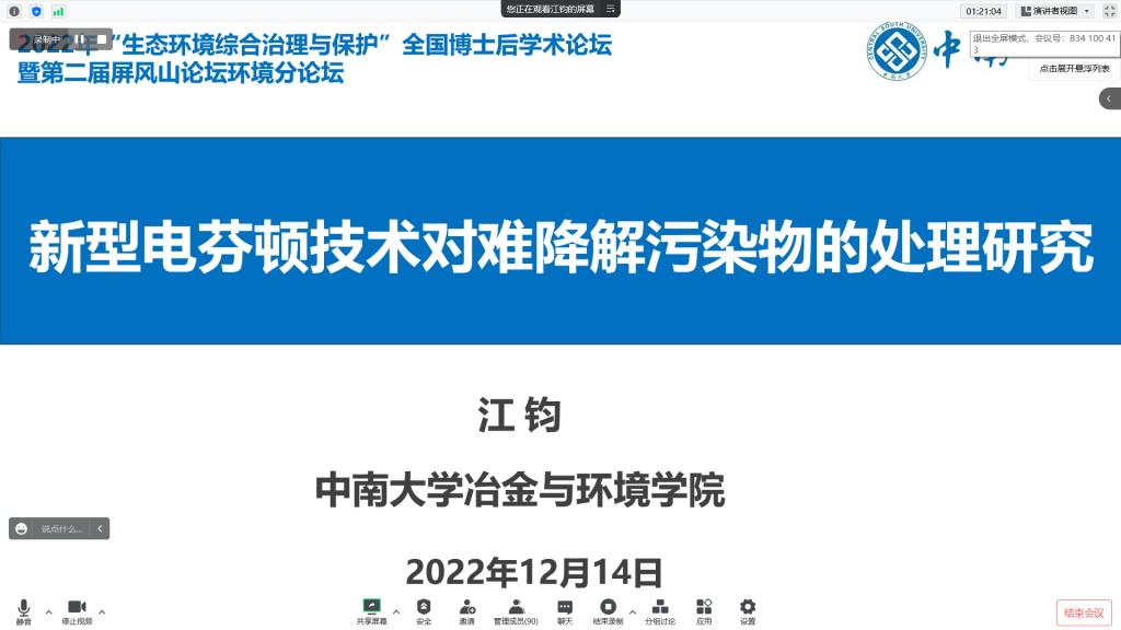 邀请华南理工大学陈培榕副教授和中南大学江钧副教授参加了2022年“生态环境综合治理与保护”全国博士后学术论坛暨第二届屏风山论坛—环境分论坛,会议由澳门六合彩资料大全