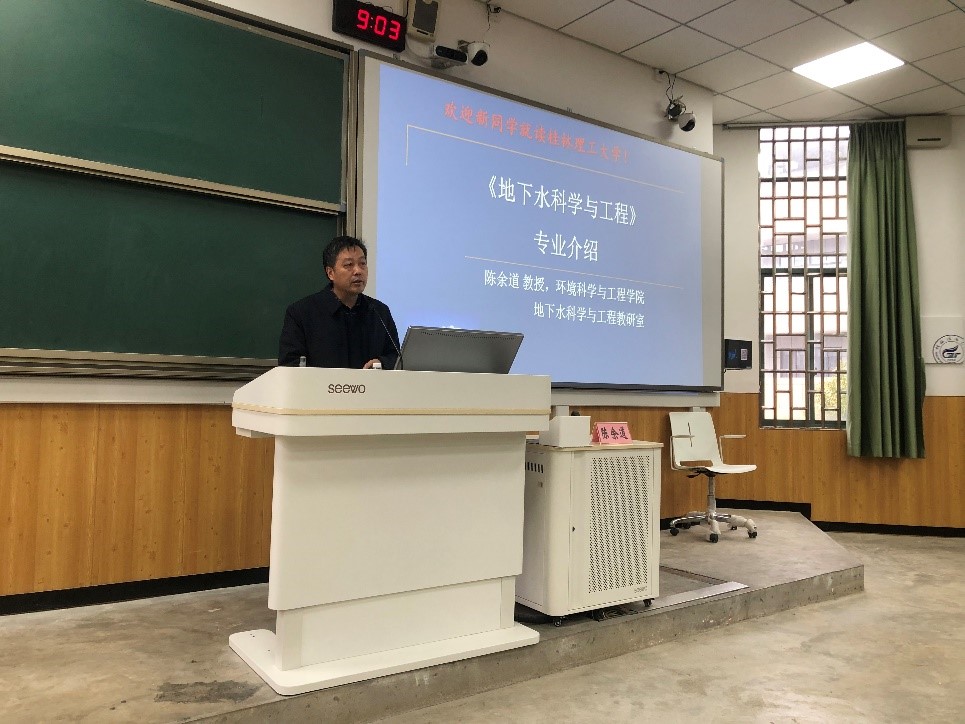 地下水科学与工程教研室于雁山校区05306教室召开2023级水利类新生专业介绍会,专业负责人陈余道教授、蓝俊康教授作报告,教研室全体教师和学工相关老师参加此次活动。