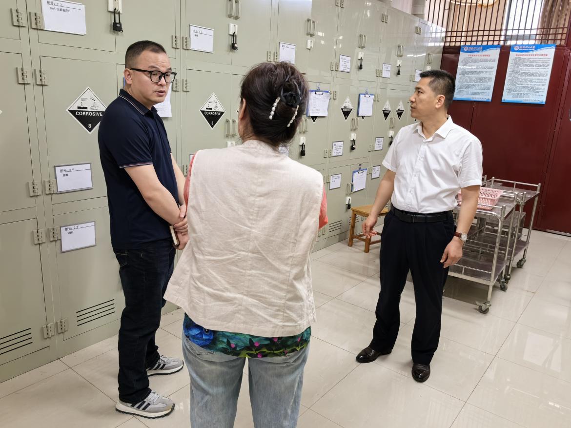 办公室、导师工作间、实验室及污水处理站及学生宿舍的安全隐患进行全面的排查,对现场检查中发现的问题提出了处置意见,要求及时整改,并要求实验室、办公室严格按照相关安全管理规定,规范化学试剂的购买、使用、储存等环节的具体要求,保障实验室的安全运行。副书记叶大相带领队对学生宿舍进行了检查,重点检查了宿舍用电、大功率用电器等情况。并亲切地与同学们进行了交谈,为同学们讲解了宿舍用电安全、人身财产安全及防范电信诈骗等相关知识,以确保同学们安全度假。