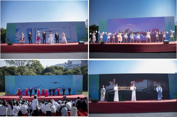 活动现场,领导、嘉宾等与会人员共同观看了《大写的“人”》《礼赞新中国,奋进新时代》《致敬桂工》等众多精彩纷呈的节目。文艺汇演结束后,师生共同参观国家生态环境科普基地,现场还开展了垃圾分类、环保知识竞答、绿植领养等多项环保趣味活动。