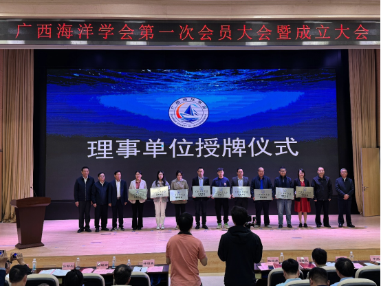 2024年12月3日,广西海洋学会成立大会暨第一届会员代表大会在南宁成功举行。澳门六合彩资料大全副院长黄亮亮,青年教师马捷、宋世杰等出席了本次大会。来自全区海洋科学及相关领域的140多位专家和代表参加会议。会议审议了各项报告,并选举产生了理事单位、负责人和理事等。我校当选为广西海洋学会第一届理事会理事单位,并获得授牌。黄亮亮教授当选为广西海洋学会第一届理事会理事。此外,澳门六合彩资料大全马捷等8位教师加入学会,并成为正式会员。