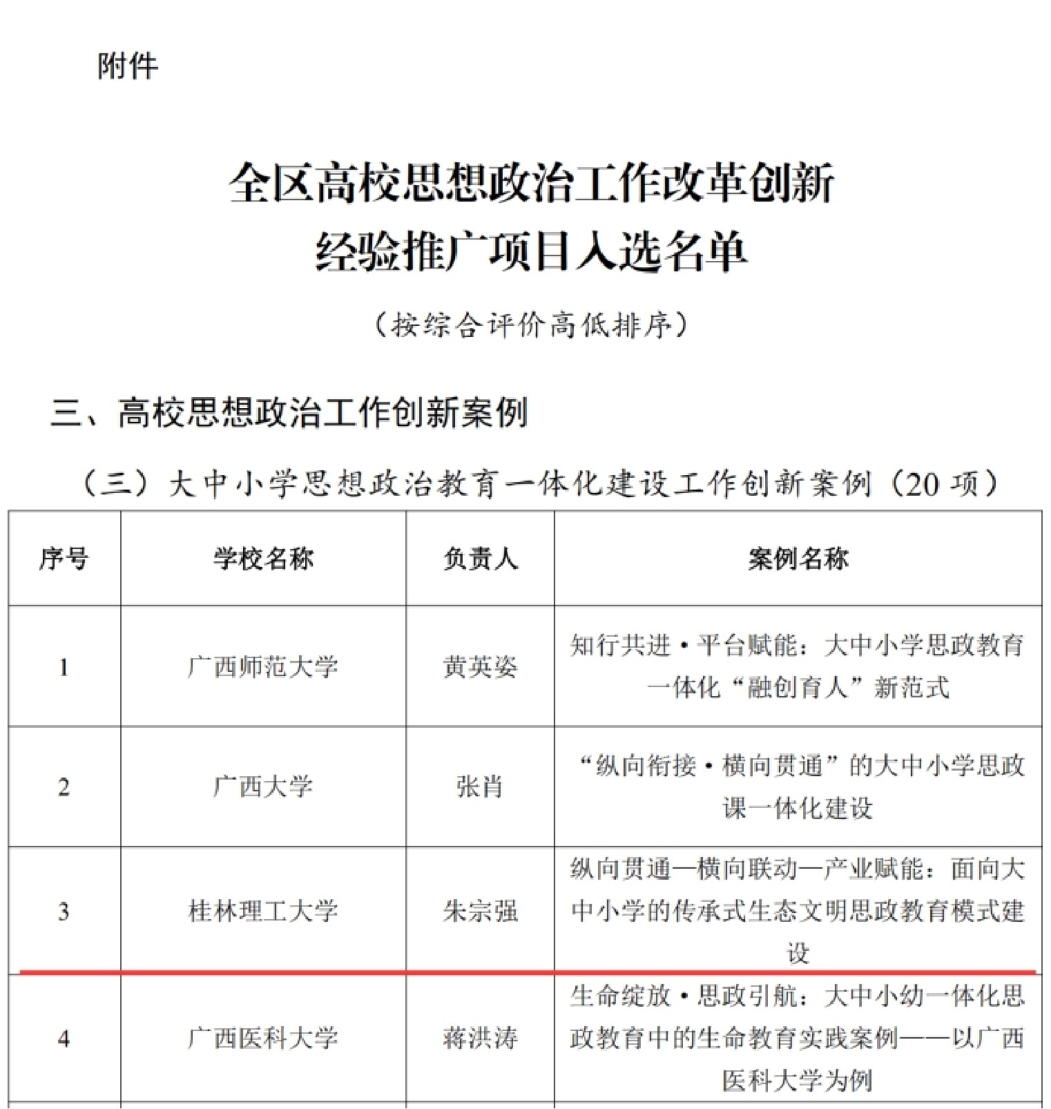 澳门六合彩资料大全入选的全区高校思想政治工作改革创新经验推广项目