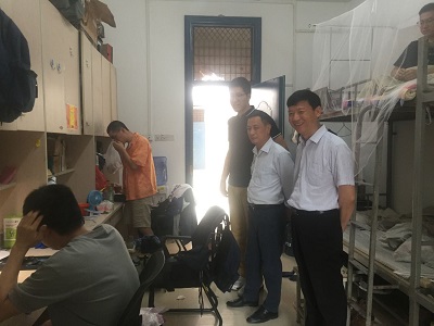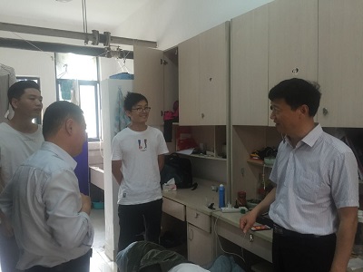在研究生宿舍,校长与学生聊起他们的学习和生活情况。在学习上,了解导师是谁、最近在做什么实验、实验环境如何、工作进展怎么样等等。在生活上,解校长特别关心他们吃的好吗、住的如何、环境怎样。看到有些同学叫外卖,嘱咐他们要注意饮食卫生,不能总吃这样的食品,对身体不好,建议他们可以考虑一下我们的食堂。看到有的学生手机充满了电后还在继续充电,告诉他们电池过充的危害,强调,电池过充后会释放出有毒易燃气体,这种气体达到一定浓度遇到明火会起火爆炸,非常危险,要他们一定注意。看到有些宿舍卫生欠佳,嘱咐他们要加强宿舍建设,激励他们以后建设国家的担子比打扫宿舍卫生的工作要繁重得多,先要扫好自己的小屋,才能担负起建设国家的重任。校长朴实无华的话语感染了在场的所有学生,他们纷纷表示,一定不辜负校长期望,努力学习,好好工作。