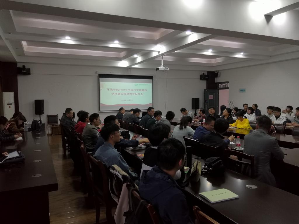 2019年11月13日下午15:00,澳门六合彩资料大全师生在雁山校区萃华楼12407会议室统一组织观看了2019年全国科学道德和学风建设宣讲报告会。