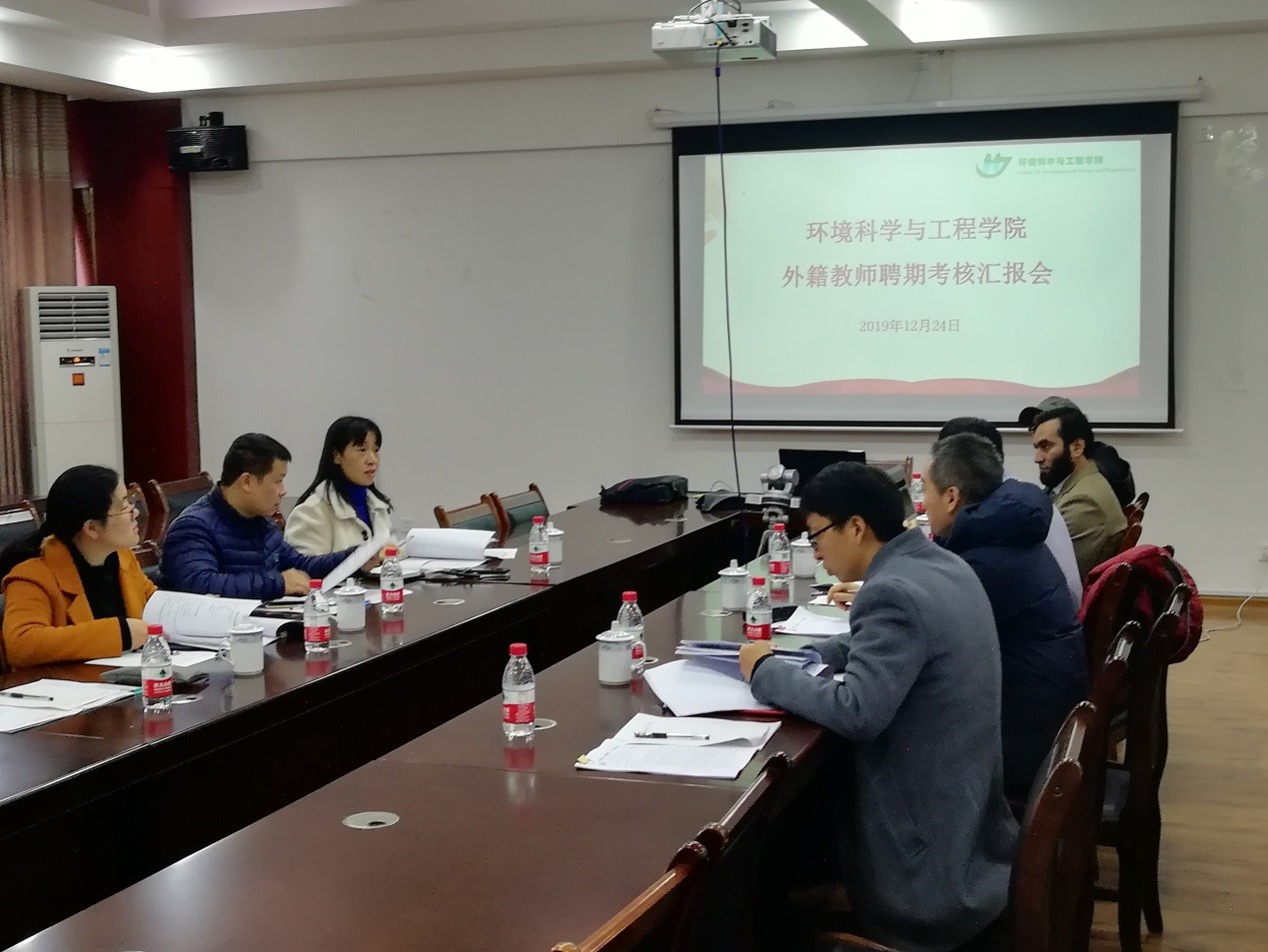 副院长李艳红、副院长黄亮亮、学校讲座教授章春芳,博士生导师刘杰、于晓章、水文水资源工程教研室主任张帅普和给排水科学与工程教研室陈文文等老师组成的考核评审小组,对Asfandyar Shahab和Rad Saeed两位外籍教师自2017年6月入职至今聘期内任务完成情况进行考核。