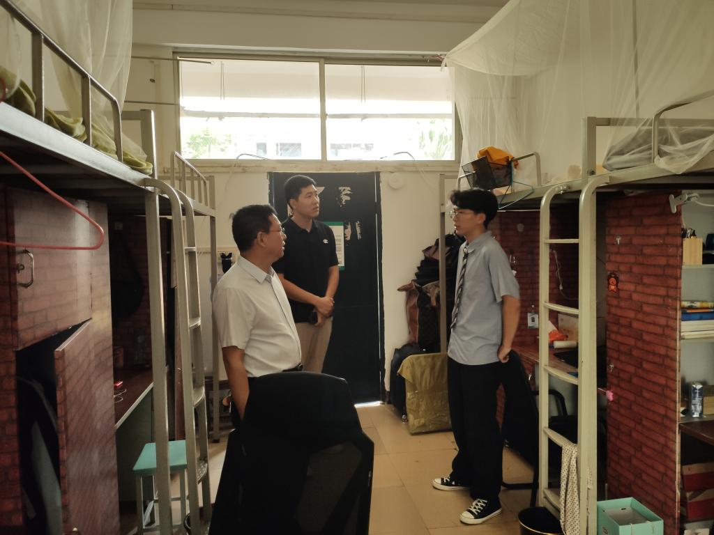 领导在走访过程中,与同学们进行了亲切交谈,了解大家的学习、生活情况,希望同学们相互关心,相互帮助,共筑和谐小家。