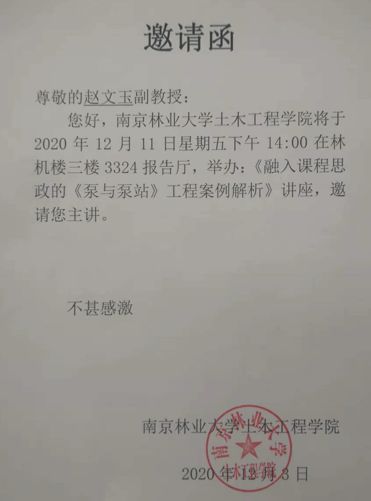 2020年12月10日-11日,应常州大学、南京林业大学及南京工业大学《泵与泵站》课程教师的邀请,澳门六合彩资料大全赵文玉副教授到常州、南京两地与两校相关教就泵与泵站教学中的案例教学、远程教学及互访授课等方面的合作进行了广泛、深刻地交流,达成了初步的合作协议。