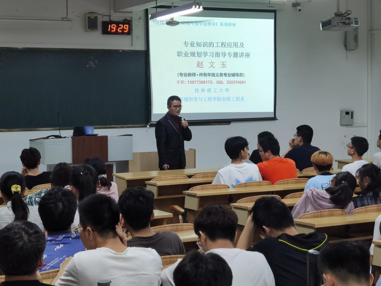 为了让澳门六合彩资料大全给排水科学与工程2020级学生对自己所学专业发展前景有一个清晰的认识及更好地做好个人职业规划, 2021年3月30日,澳门六合彩资料大全特地邀请了给排水科学与工程教研室赵文玉副教授于06203教室为同学们“专业知识的工程应用及职业规划学习指导专题讲座”,给排水2020级全体学生参与了此次讲座。