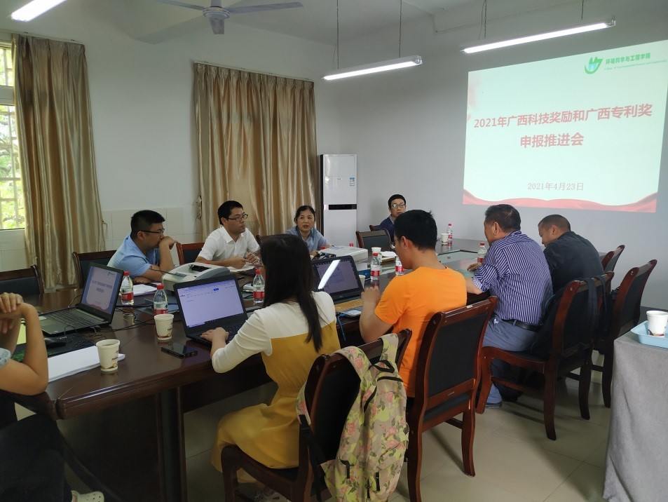 副院长黄亮亮主持,邀请到科技处副处长莫凌云莅临解读申报细则并对各申报教师进行疑难解答,参加此次推进会的教师有今年拟申报广西科技奖励或广西专利奖的老师。