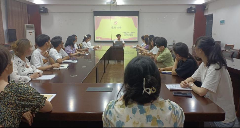 为了加强党员教育管理,发挥党员先锋模范作用。7月2日晚上,澳门六合彩资料大全研究生二支部在雁山校区萃华楼12407会议室组织开展“学习习近平总书记在庆祝中国共产党成立100周年大会上的讲话”主题党日活动。支部书记及全体党员参加会议,本次党课由支部副书记主持。