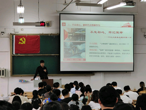 党课开始,杨平平老师领读了《请党放心 强国有我》节选,全体学员齐声朗诵,表达了当代青年强烈的爱国爱党情怀。何宗平老师主要从“人民要有信仰,国家才有力量”“观念内化于心,思想融入灵魂”以及“思想外化于行,梦想落地生根”三大诠释了“中国梦”和“社会主义核心价值观”。他指出,“两个一百年”奋斗目标的提出,不仅勾勒出了中国特色社会主义的宏伟蓝图,也为当代青少年构筑了奋斗目标。在何宗平老师从青年梦想,上升到家国梦想,并结合实际情况,以新时代特色产物为例,激励同学们冲破时代禁锢,发扬创新精神,共同实现中国梦。谈到社会主义核心价值观时,何宗平老师强调:青年要牢记24字,并以此为纲领,砥砺奋进,建设美丽家园,不忘初心,踏上社会主义新征程。青年只有融入国家民族的伟大事业,才最有力量,永远跟党走,勇做时代弄潮儿!