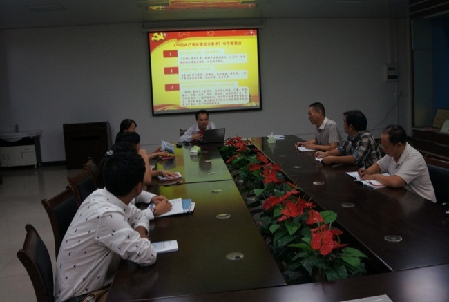 “两学一做”学习教育统一部署,结合支部工作情况,澳门六合彩资料大全教工党员四支部在雁山12310会议室举行学习《中国共产党纪律处分条例》专题党课活动由支部书记梁延鹏做专题报告,带领全体党员认真学习《中国共产党纪律处分条例》。