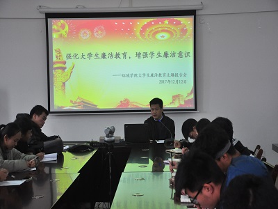 为贯彻落实十九大精神,宣传反腐倡廉理念,强化大学生廉洁自律和风险防范意识,根据学校《关于组织开展2017年秋季学期“廉政教育活动周”的通知》要求,2017年12月12日上午,澳门六合彩资料大全在雁山校区萃华楼12407会议室组织开展大学生廉洁教育主题报告会,此次报告会有澳门六合彩资料大全