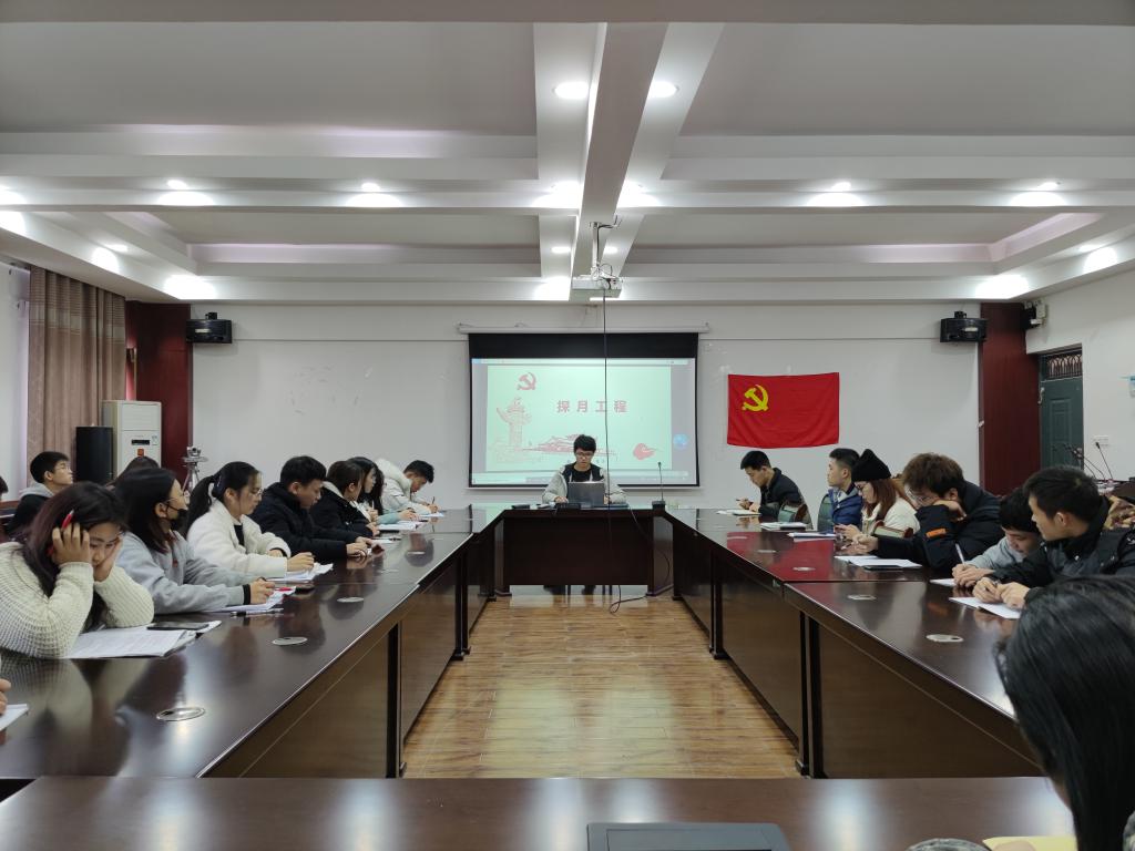 12月18日下午,澳门六合彩资料大全本科生第三党支部于雁山校区12407会议室开展了“探月工程”主题党日活动。本次活动由黎威同志主持。